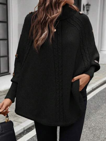 Stilvoller Pullover mit Fledermausärmeln und dekorativen Knöpfen.